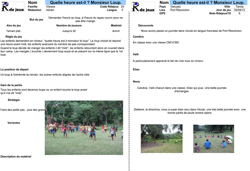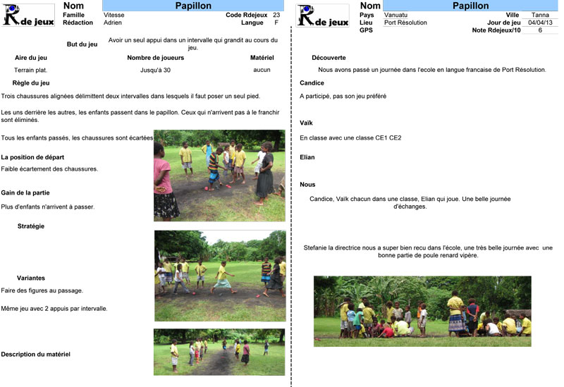 Dans les deux cas, ils ont eu du mal à nous présenter des jeux en nous disant que les enfants ne jouaient plus. Je pense qu’il y a pas mal de timidité derrière tout ça et qu’un échange plus long aurait pu débloquer. Un jeu commun le Tigre et le Cochon, qu’on a appris sous le nom de Chat et Souris en Bolivie et revu au Vanuatu. C’est aussi sympa de voir cet internationalité de jeux d’enfants.